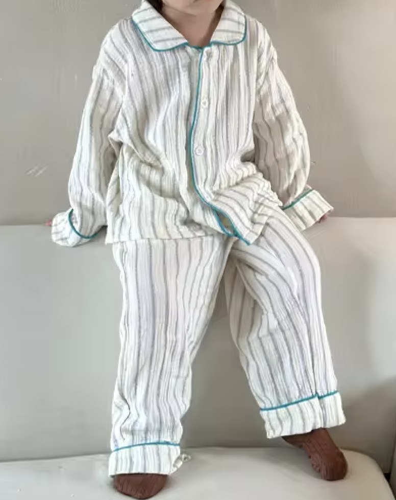 Striped Button-Down Gauze Children's Pyjama Set w/ Peter Pan Collar